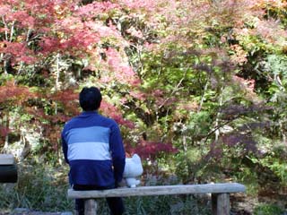 Myu達が住んでいる町には、紅葉の名所があるのにゃ。 連れてってもらったのにゃ♪ HIROとふたりでうっとり・・・。これって、デート? |