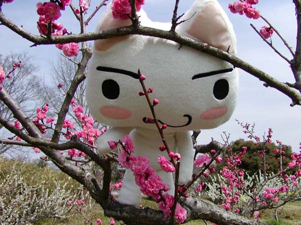 梅を見に来たのにゃ。 白いお花と赤いお花の2種類あるにゃ。 とってもいいにおいがするにゃ。 |