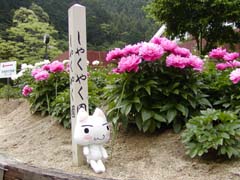 Myuの実家のある町に、大きな公園があるのにゃ。 そこでは春に何十種類ものしゃくやくが咲くんだって。 この日もたくさんの人が見に来てたのにゃ。 ねえ、トロとどっちが美人? |