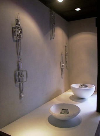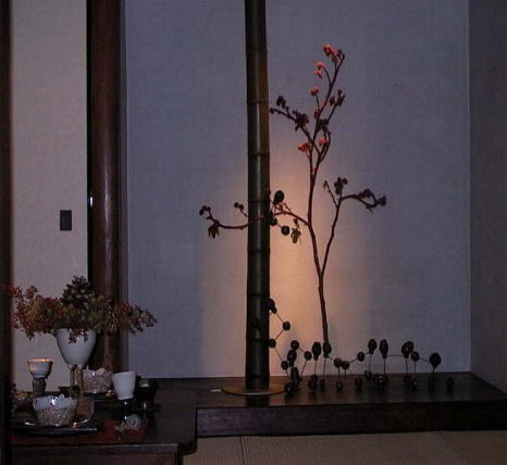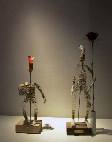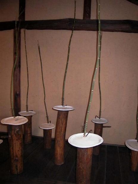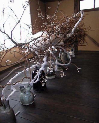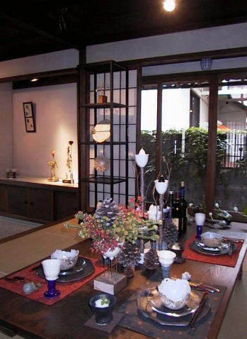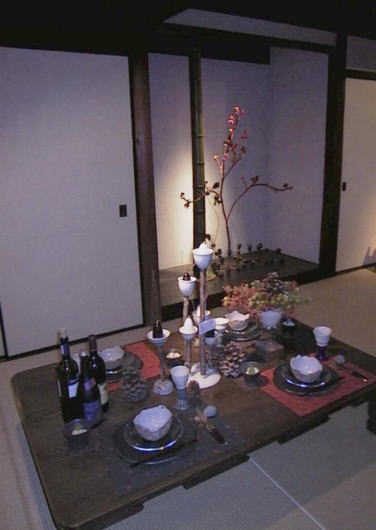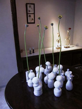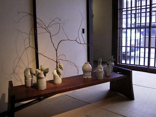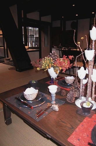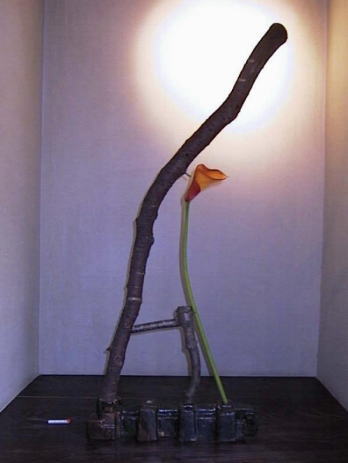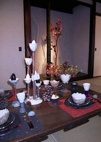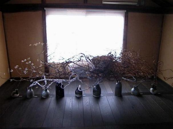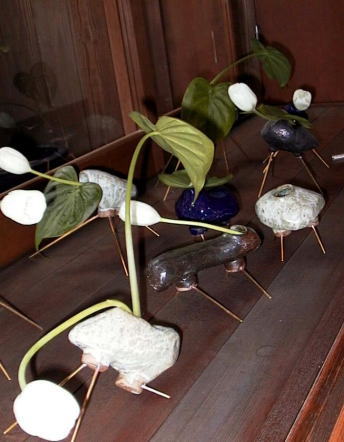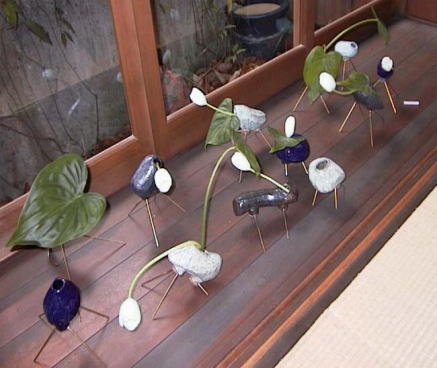 私が作った変な花器やオブジェに草月流の楢崎 聖さんが花?を入れてくれました。