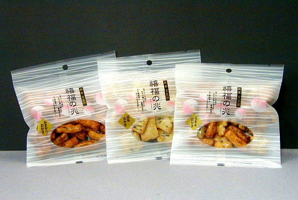 おかき ・花水木 1袋 30g 昆布、しそ、海老、帆立など 彩り豊かなおいしさを詰め合 わせた吹き寄せ ・あまから 1袋 30g 深みのある砂糖醤油で甘辛 く仕上げ、ふっくらと焼き上げ たおかき ・昆布 1袋 30g 昆布の味わいを生かし、あっ さりと塩味で仕上げた磯の香 り豊かなおかき |