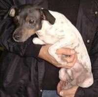 くりりとくりりのお姉ちゃん(えみさん)。 抱っこされてるのがくりりのお姉ちゃん。 出会いが少ないわりには他のワンちゃんも平気なくりりと違って、シャイなお姉ちゃんです。 お姉ちゃんにはお婿さん(はっちゃん)もいます。 (羨ましい〜byくりり) |