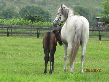 新冠の豊栄牧場でサラブレッドの母子(6.13)