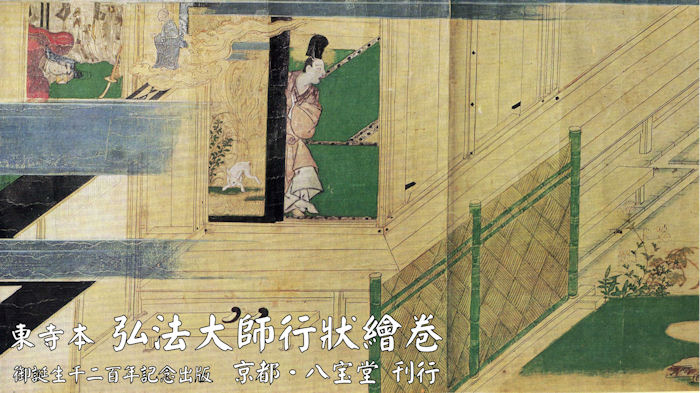 師をもとめて異国に留学し、大日如来七代目の祖師、長安青龍寺(せいりゅうじ)の恵果(けいか)和尚について両部の曼荼羅をつたえ、経論道具をもたらして京都東寺にお納めになった。秘教を宣揚して衆生(しゅじょう)を導引すること仏法渡来以後はじめてのことである。その一々の行状まことに奇特であって、見る人は大師ご入定の高志を考え、懸命の報恩をいたさねばならない。