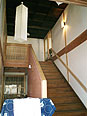 明治期の母屋を貸しギャラリーとして再生した建物。以前銀行として使用していた名残りの格天井の一部を再利用し、ホールにその雰囲気を残している。一階の展示室は木とイタリアンテラコッタの仕上げで温かみを持たせ、二階の大展示室は洋小屋の黒くて太い梁を露出させロフトのイメージをつくっている。小展示室は格天井を残し、囲われた小空間で小物の展示を可能にした。南側の既存の店舗とは通路を通すことで南北の道が繋がるように計画している。