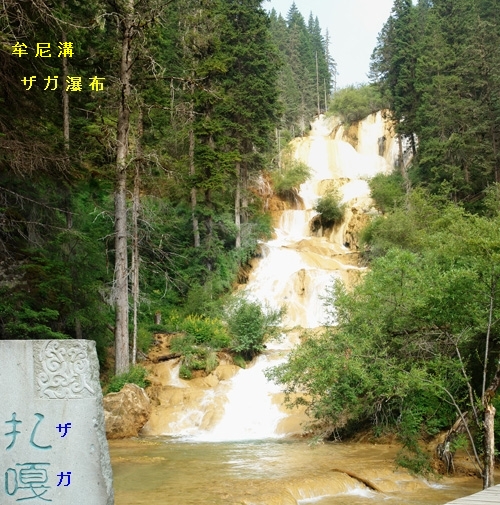 牟尼溝のザガ瀑布は落差104m。中国一番の落差。