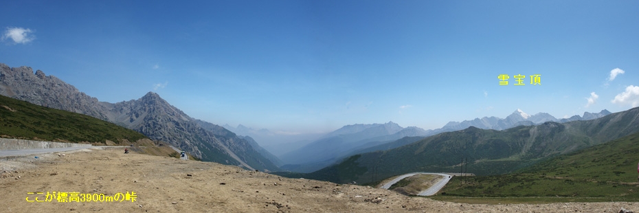 松藩から黄竜に行くには3900mの峠を越える。そのとき雪をいだいた雪宝頂(5588m)が綺麗にみえた。