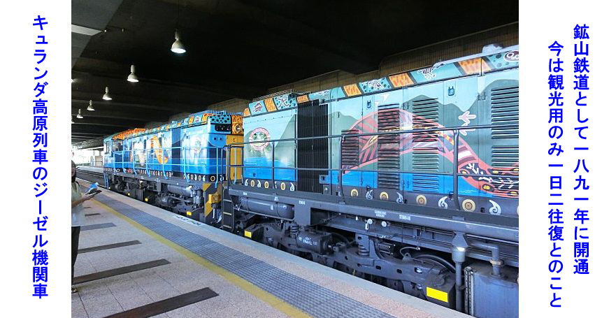 列車はアボリジニの伝説に登場するニシキヘビで飾られた機関車に引かれて15両編成でした。